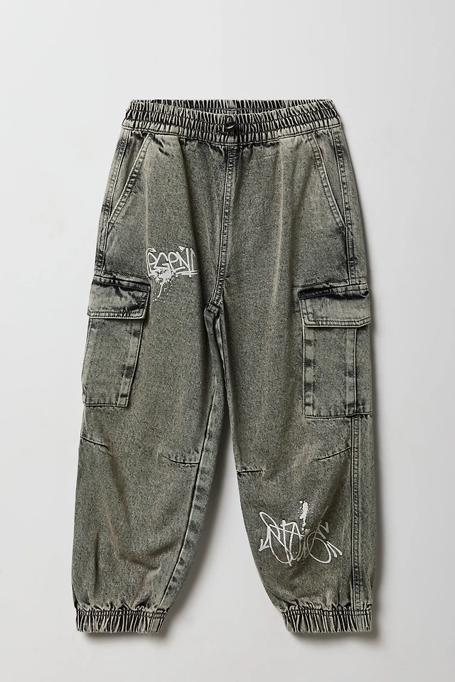 Jogger cargo en denim à imprimé graffiti pour garçons