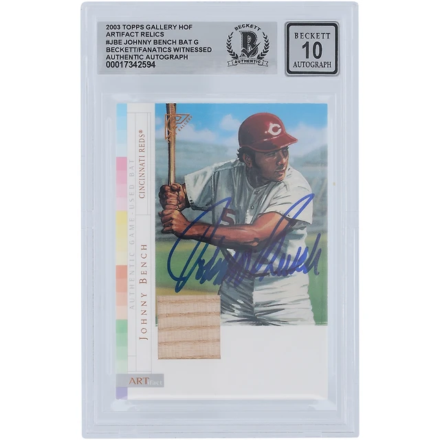 Johnny Bench Cincinnati Reds Autographed 2003 Topps Gallery Artifacts Bat Relic #AR-JBE Beckett Fanatics Witnessed Authenticated 10 Card