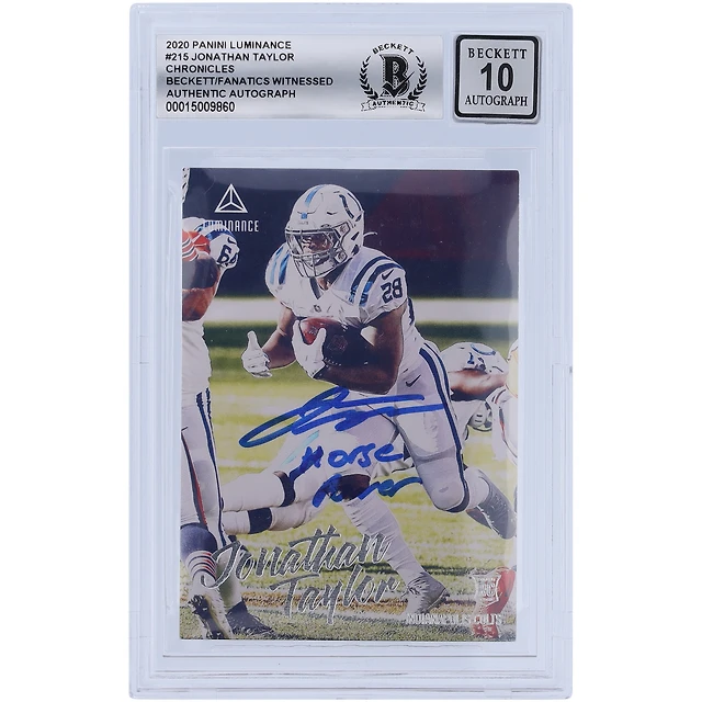 Jonathan Taylor Indianapolis Colts Autographié 2020 Panini Chronicles Luminance #215 Beckett Fanatics Witnessed Authenticated 10 Rookie Card avec l'inscription "Horse Power"