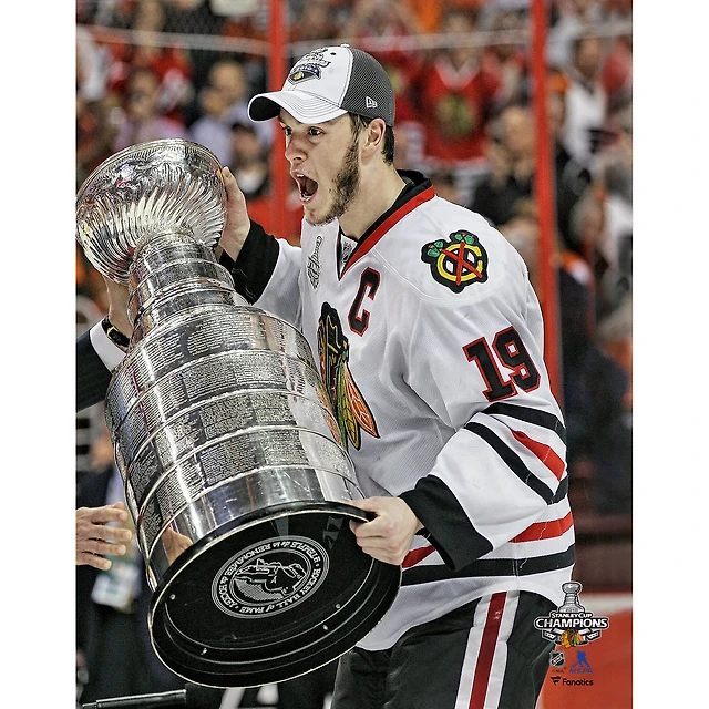 Jonathan Toews Chicago Blackhawks Unsigned Stanley Cup Champions Raising Photograph