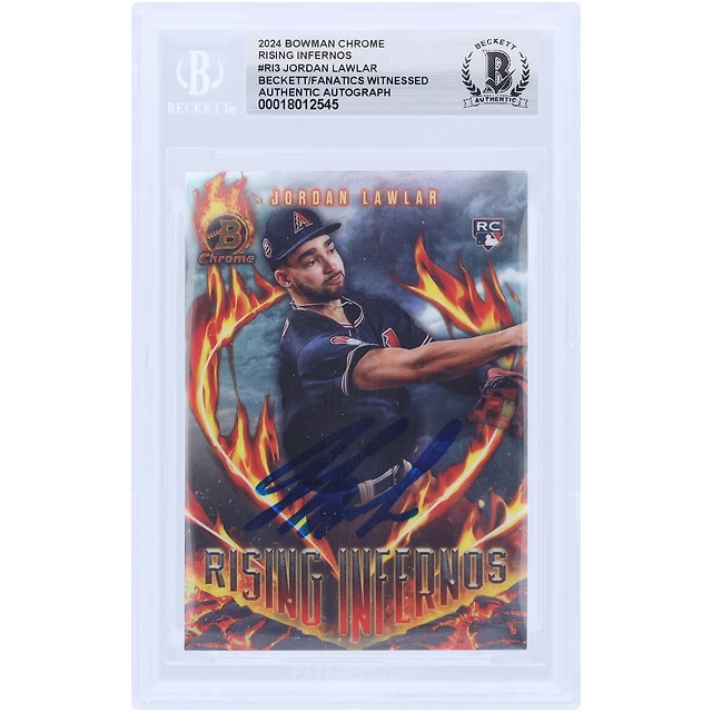 Jordan Lawlar Arizona Diamondbacks autographié 2024 Bowman Chrome Rising Infernos #RI-3 Beckett Fanatics a été témoin d'une carte de recrue authentifiée