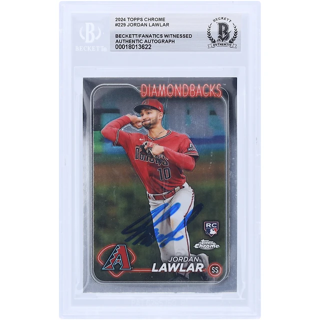 Jordan Lawlar Arizona Diamondbacks autographié 2024 Topps Chrome #229 Beckett Fanatics a vu une carte de recrue authentifiée