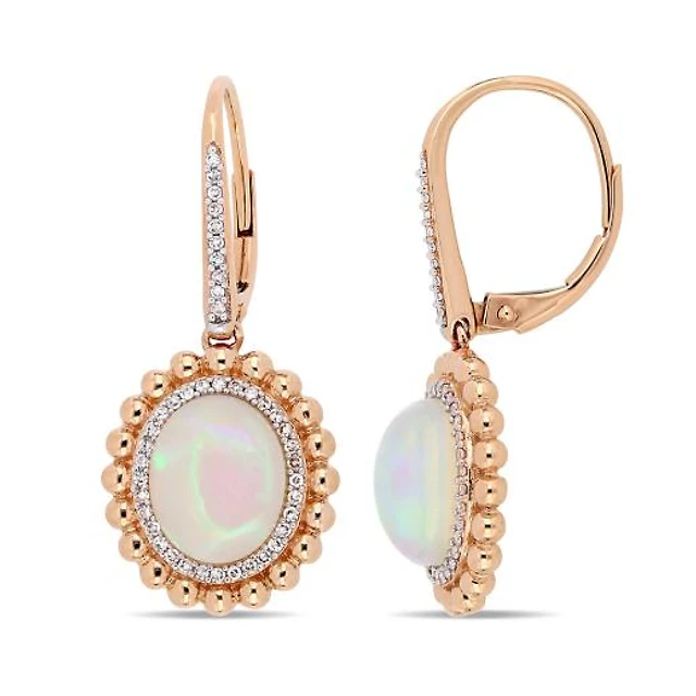 Julianna B 14K Rose Gold 0.25CTW Diamond & Ethiopian Opal Leverback Earrings