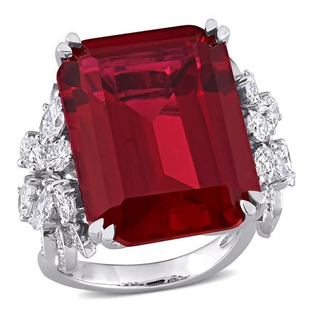 Julianna B 14K White Gold Created Ruby & Diamond Ring