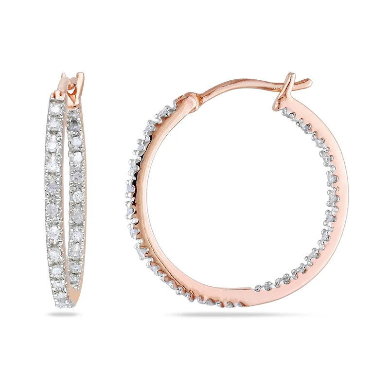 Julianna B Rose Plated Sterling Silver 0.25CTW Diamond Hoop Earrings