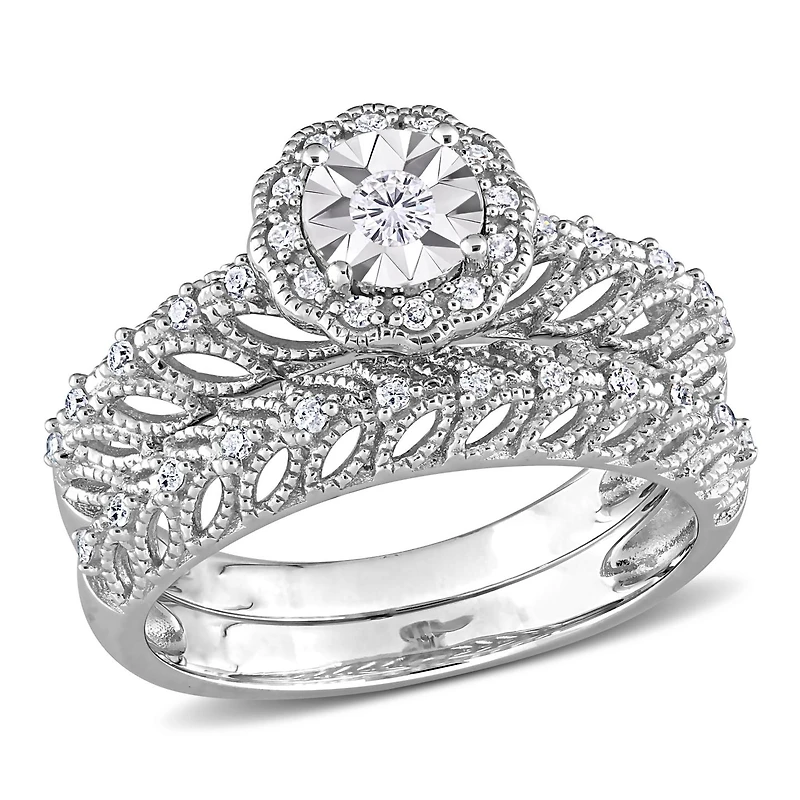 Julianna B Sterling Silver 0.24CTW Diamond Bridal Set
