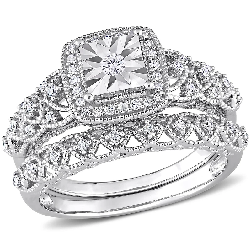 Julianna B Sterling Silver 0.28CTW Diamond Bridal Set