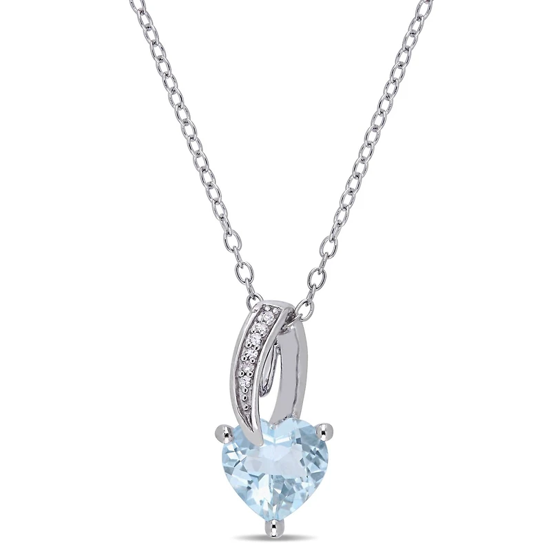 Julianna B Sterling Silver Aquamarine & Diamond Heart Pendant with Chain