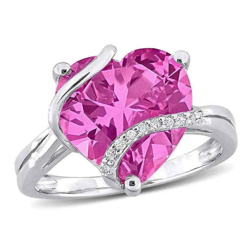 Elevate your love story with our enchanting 7 1/4 CT TGW Created Pink Sapphire and Diamond Accent Heart Wrapped Ring in Sterling Silver. This captivating piece features a sizable heart-shaped centerpiece adorned with 7.25 carats of created pink sapphires, exuding a romantic and vibrant aura.The exquisite design includes sparkling diamond accents that gracefully wrap around the heart, adding a touch of brilliance and sophistication. Set in sterling silver, this ring combines opulence with affordability, making it a dazzling symbol of your enduring love.Celebrate the extraordinary with a ring that captures the essence of romance and elegance. Our Created Pink Sapphire and Diamond Accent Heart Wrapped Ring is a statement piece that promises to make every moment special.
