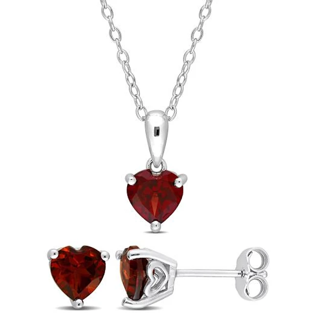 Julianna B Sterling Silver Garnet Earring & Pendant Set