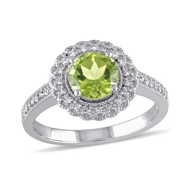 Julianna B Sterling Silver Peridot & Diamond Ring