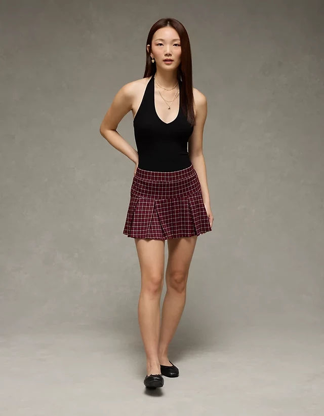 Jupe-short à carreaux en tricot tendance plissée taille basse AE
