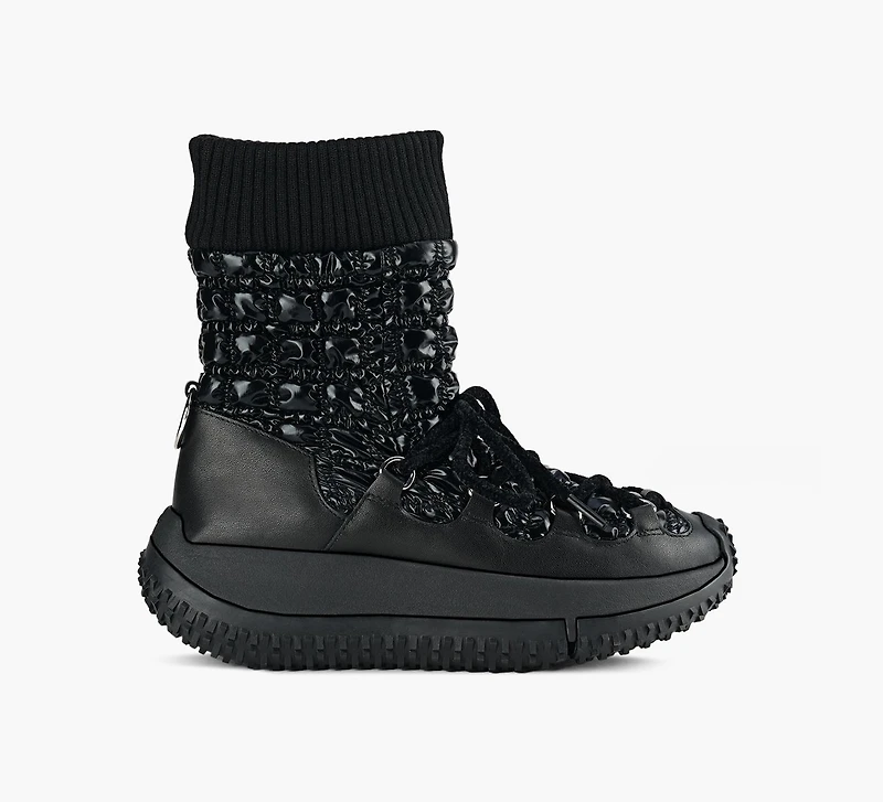 Cozy dressing just got an upgrade, thanks to 4CCCCEES' Kapok Candy booties. Blurring the lines between your favourite pair of comfy socks and a snuggly booty, this style features a ruched upper fitted with a knitted panel at the calf. Sturdy laces offer an adjustable and secure fit, while the pair's geometric-embossed sole offers optimal traction and responsive cushioning with each step. Whether you're conquering the beaten path or simply running out for your morning coffee, these are certain to see you through any adventure in style.