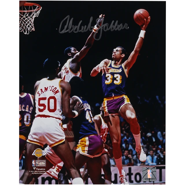 Kareem Abdul-Jabbar Los Angeles Lakers Autographed 8" x 10" Sky Hook vs. Houston Rockets Photograph