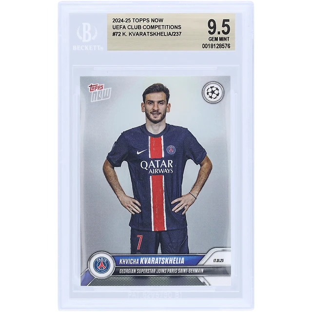 Khvicha Kvaratskhelia Paris Saint-Germain 2024-25 Topps maintenant la superstar géorgienne rejoint le PSG #72 BGS Carte authentifiée 9.5