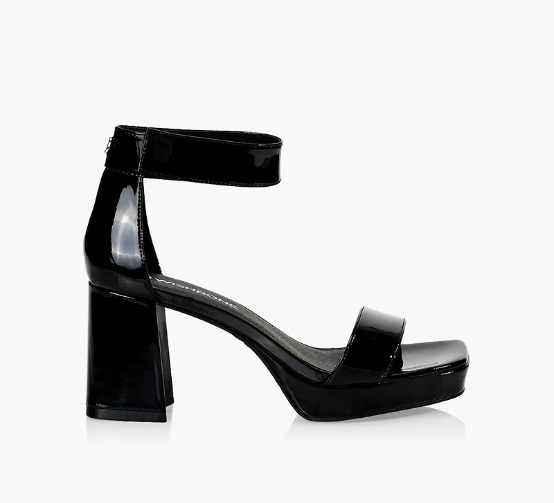 Kiara is dreams of the disco with its covered heel, anklet strap and matching toe strap. With a thick heel to boot, Kiara adds some retro flair to your most chic outfit.