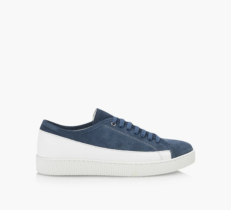 A round-toe classic with a signature flourish: Kinney's two-tone panels give them impression that its white soles continue into its upper offering a look that is both retro and innovative, easy on the easy and eyes to style. The rest of its construction is standard fare, refined by our keen-eyed shoemakers with embellishments such as a geometrically textured sole, neat stitches, and a low-top silhouette.