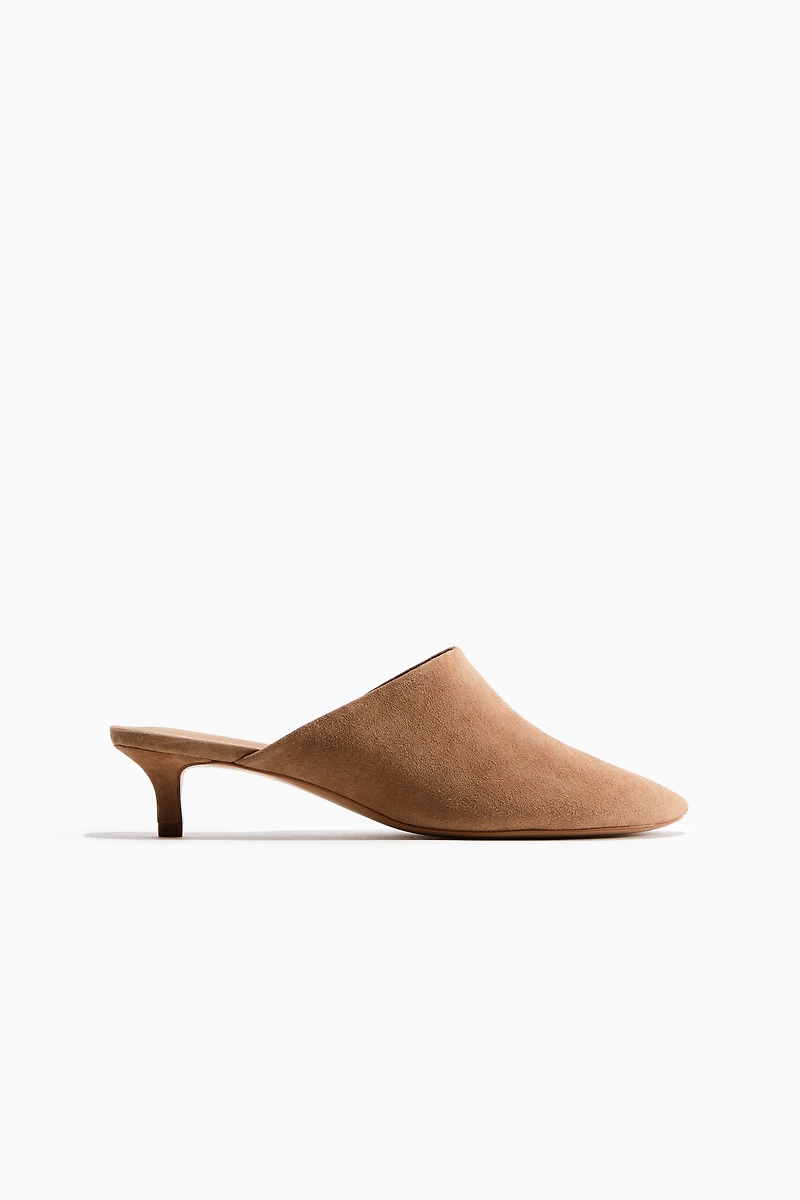 Kitten-Heeled Leather Mules