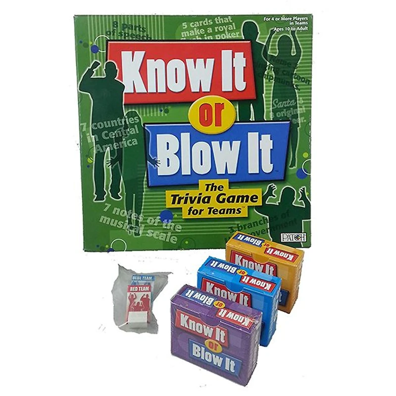 In Know It or Blow It, your team will test its knowledge about fun facts like the 3 primary colors, 5 senses or Santa’s 8 reindeer. The best part is you don’t have to know it all!For each round, a team captain picks the order that teammates will respond. If you know an answer, great! If you’re not absolutely, positively sure, you can stop rather than risk your team’s points. But if you answer incorrectly and blow it, your team loses its points for the round.Get ready to show off your knowledge in the Trivia Game for Teams!