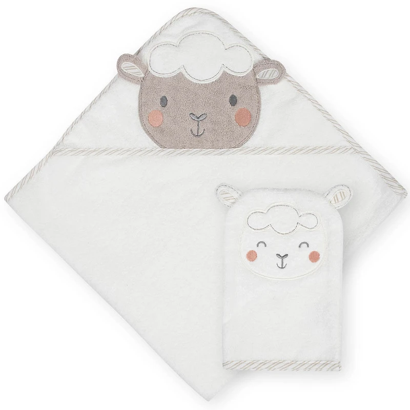 Koala Baby Woven Hooded Towel and Washcloth Set, Little Lamb