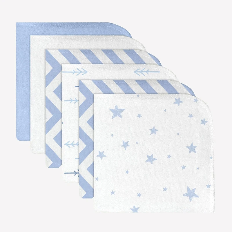 Kushies Baby Washcloths 6-Pack - Baby Boy Washcloths for Face and Body - Baby Wipes - Face Wash cloths - Assorted Prints