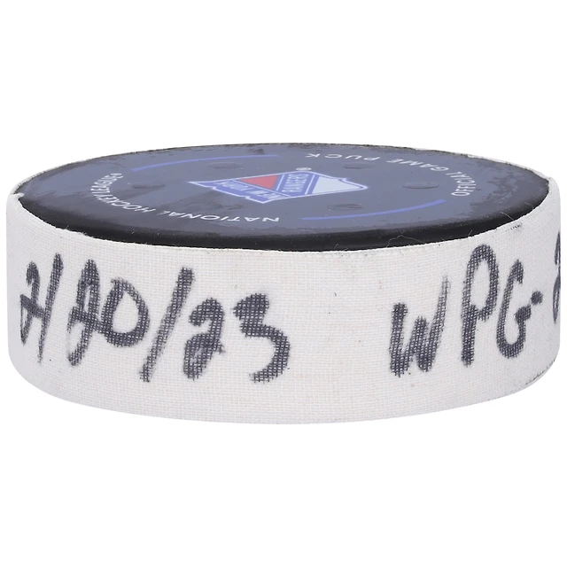 Kyle Connor, rondelle de but utilisée par les Jets de Winnipeg le 20 février 2023 contre les Rangers de New York