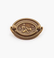 The large plate pull is 64mm center to center, 3 1/8" wide and 2 3/8" high; the small is 52mm center to center, 2 1/2" wide and 1 15/16" high.