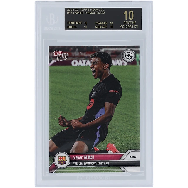 Lamine Yamal Barcelone 2024 Topps maintenant premier but en UEFA Champions League 19.09.24 Black Label #17 BGS Carte authentifiée 10 - Sous-grades 10,10,10,10