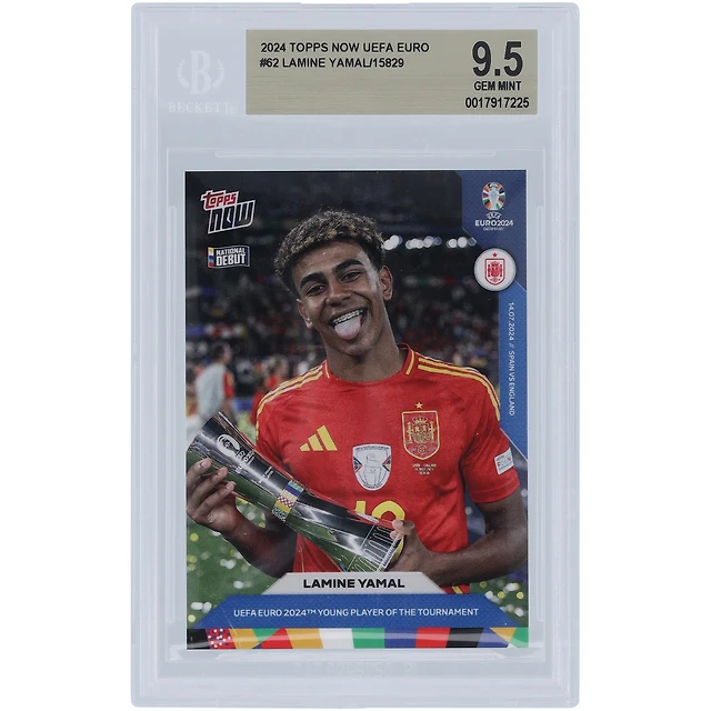 Lamine Yamal Équipe nationale d'Espagne 2024 Topps maintenant Jeune joueur du tournoi de l'UEFA Euro 2024 14.07.24 #62 BGS Carte authentifiée 9.5