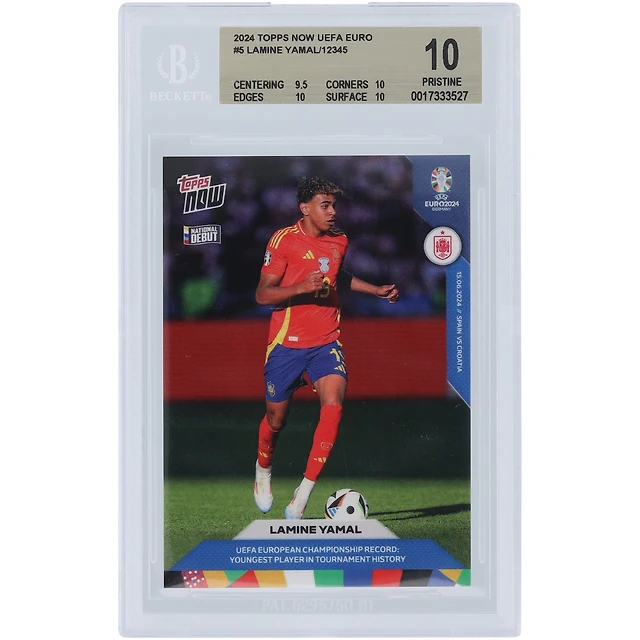 Lamine Yamal Spain National Team 2024 Topps Now UEFA Euro Youngest Player in Tournament History #5 BGS Authenticated 10 Rookie Card - 9.5,10,10,10 Subgrades