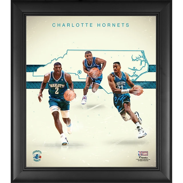 Larry Johnson Alonzo Mourning & Muggsy Bogues Charlotte Hornets Encadré 15" x 17" Années 1990 Franchise Hardwood Classics Foundations Collage