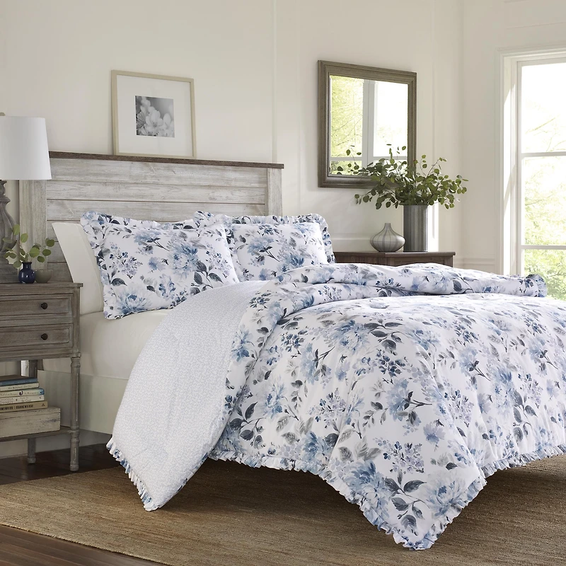 Garden inspiration brings natural beauty to any space, making Laura Ashley’s floral designs a perfect décorating choice. This beautiful blue and white watercolor print gives the classic Garden floral a modern update with its relaxed painterly style