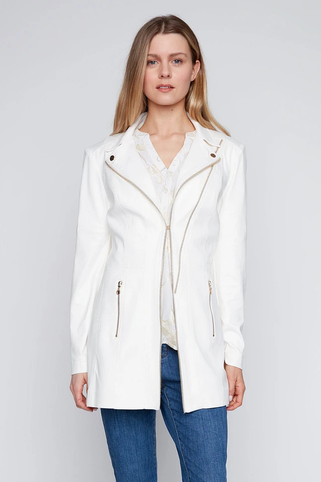 Le blazer long en similicuir avec bordure zippée