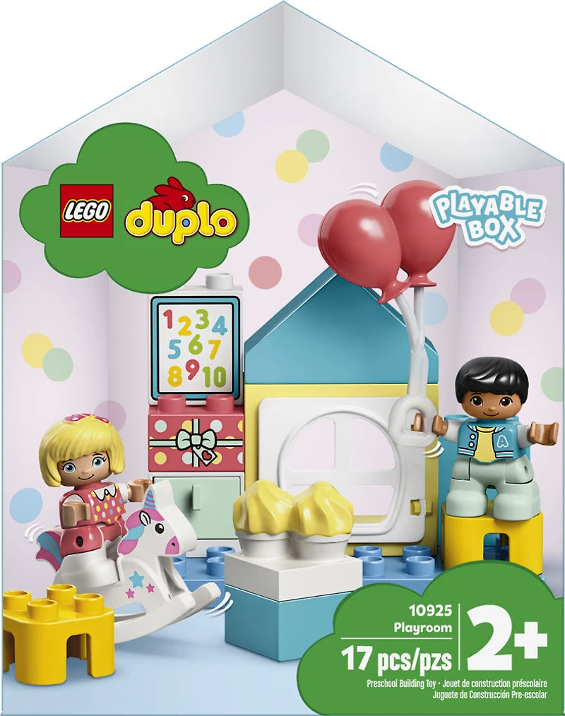 Toddlers can role-play imaginative stories in the LEGO DUPLO Playroom, including learning in the toy school and celebrating at the birthday party For extra fun, combine this set with LEGO DUPLO Town Bedroom (10926)