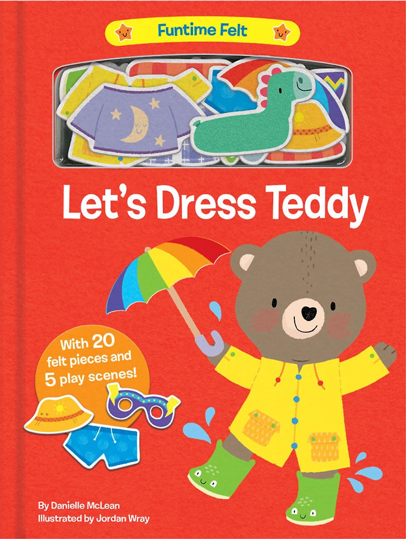 Little ones can use the 20 colorful felt pieces to help Teddy get dressed for each occasion in this interactive board book! Teddy's off to the beach, but first he needs to get ready. Can you help? With soft felt pieces to place in five different scenes, little ones can help Teddy get dressed for the beach and a costume party, play in the snow, splash in the rain, and snuggle up at bedtime. This interactive experience can encourage children's confidence that they can dress independently. Includes a plastic storage pouch to keep the felt pieces secure and organized. Don't miss Make Teddy Better, another Funtime Felt book! Author - Danielle McLean Illustrator - Jordan Wray Number of Pages - 10 Format - Board Publisher - RH Childrens Books Published - 2021-05-04