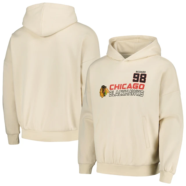 Levelwear pour hommes Connor Bedard crème Chicago Blackhawks Nom et numéro de contact Pull à capuche surdimensionné