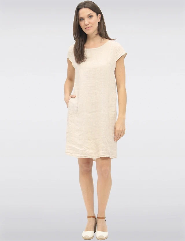 Lightweight Linen Midi Dress with Cap Sleeves & Convenient Pockets by Froccella
