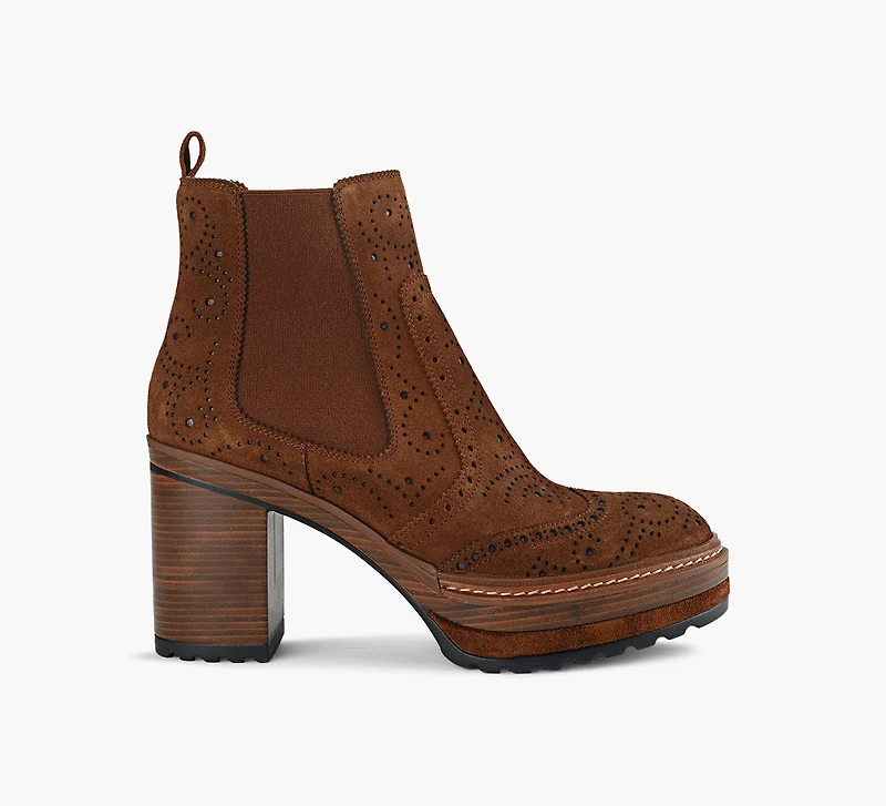 Crunching leaves and changing colours: autumn is the season for textures, and Browns Couture's Lilly Chelsea is a play on exactly that. Crafted from buttery suede, this style features sleek puncturing throughout in swirling motifs. Stacked on a platform lug tread sole, this slip-on pair features a towering block heel to add height to your frame without compromising on comfort.