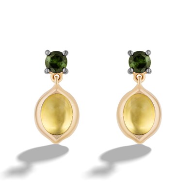 Limor Mindful Jewellery Elements Earth Lemon Quartz and Green Tourmaline Earrings in Sterling Silver with 24K Gold Plate