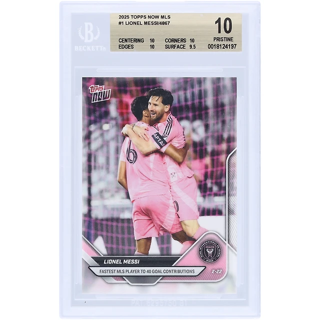 Lionel Messi Inter Miami CF 2025 Topps maintenant le joueur de MLS le plus rapide à contribuer à 40 buts #1 BGS Authenticated 10 Card - 10,10,10,9.5 Subgrades