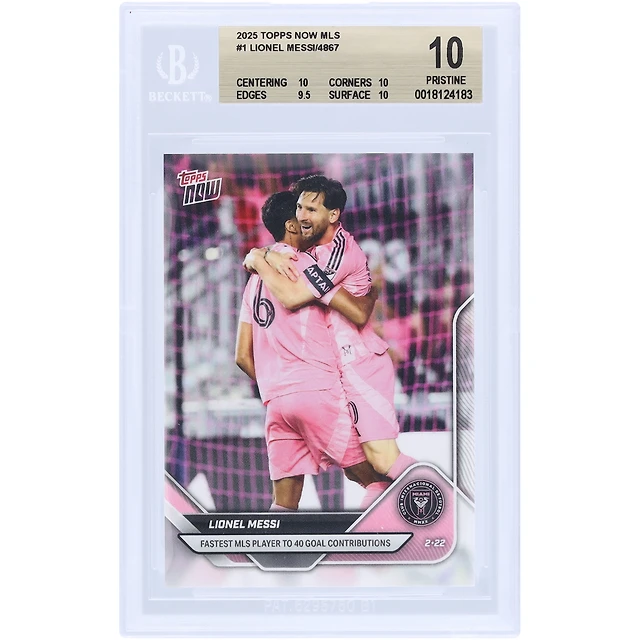 Lionel Messi Inter Miami CF 2025 Topps maintenant le joueur de MLS le plus rapide à contribuer à 40 buts #1 BGS Authenticated 10 Card - 10,10,9.5,10 Subgrades