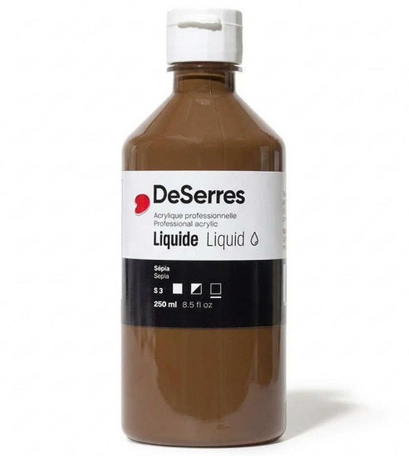 Dacryl Professional Liquid Acrylics are formulated to achieve maximum pigment concentration and colour intensity, consistent with excellent handling and stability properties. As no fillers or extenders are used in DeSerres Professional Liquid Acrylics, once dry, most colours dry to a natural gloss finish, while those with larger pigment particles offer more of a satin finish.These colours will not separate or settle in the jar and can be readily mixed with DeSerres mediums at any ratio, or with up to 50% water for increased transparency and cost efficiency. They dry to a flexible, water and light-resistant finish. Perfect for students and professionals.
