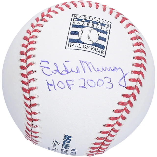 Logo autographié du Temple de la renommée par Eddie Murray des Orioles de Baltimore avec l'inscription « HOF 2003 »
