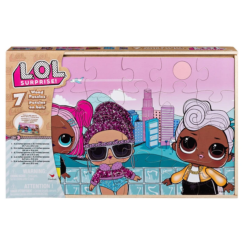 L.O.L. Surprise! 7-Pack Wood Puzzles in Wood Storage Tray