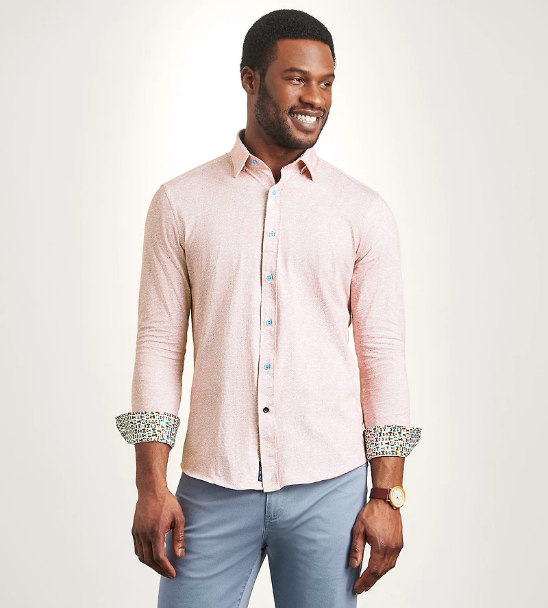 Long Sleeve Geo Pattern 360 Stretch Casual Shirt