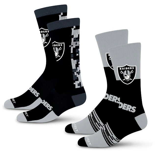 Lot de 2 paires de chaussettes unisexes pour pieds nus Las Vegas Raiders Double Duo Crew