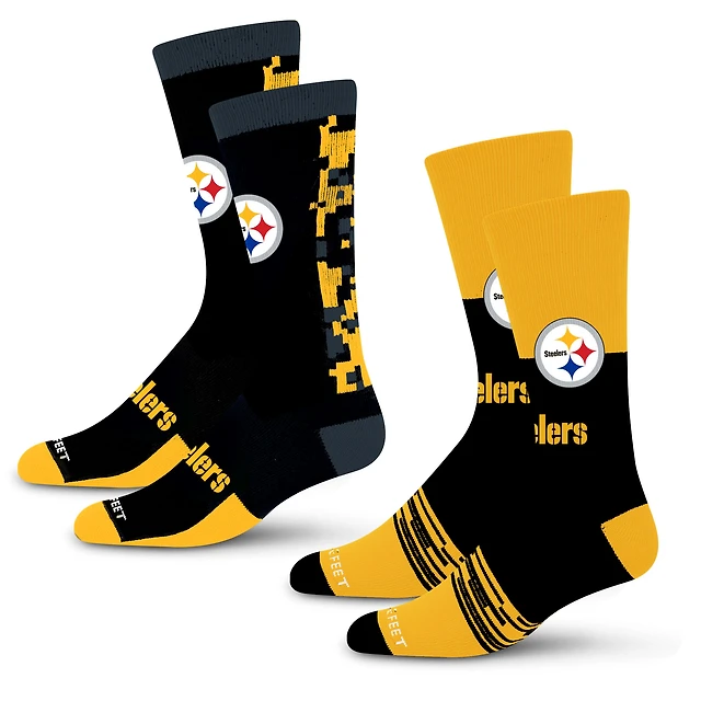 Lot de 2 paires de chaussettes unisexes pour pieds nus Pittsburgh Steelers Double Duo Crew