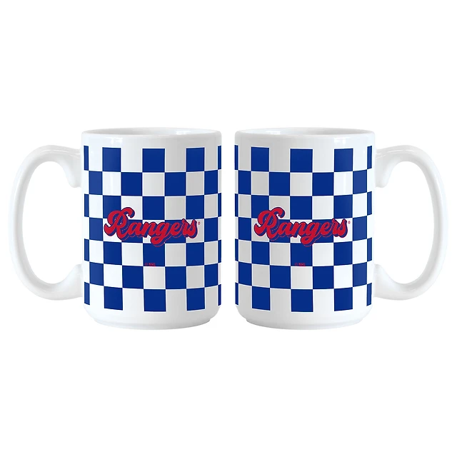 Lot de 2 tasses à motif de damier de 15 oz avec inscription en anglais des Rangers de New York