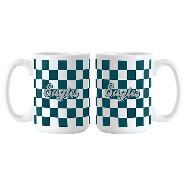 Lot de 2 tasses à motif de damier Philadelphia Eagles de 15 oz
