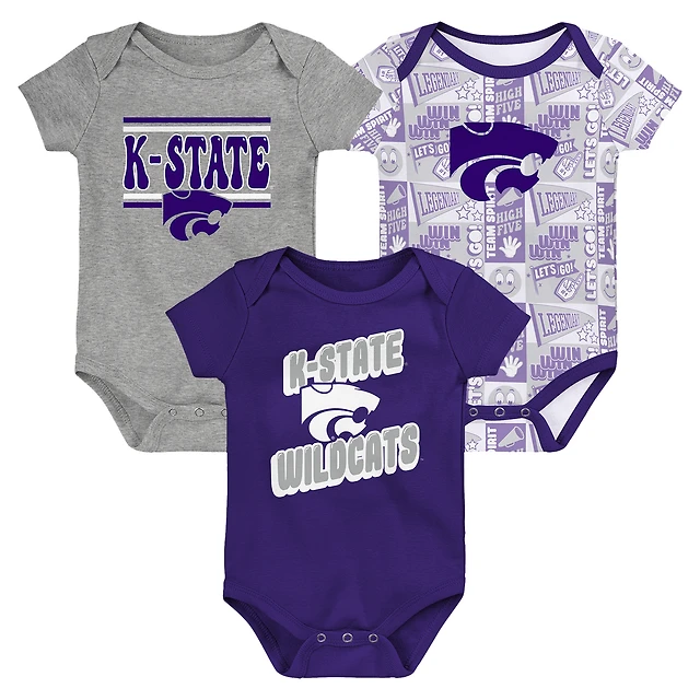 Lot de 3 bodies violets pour nouveau-né Kansas State Wildcats Sunday Comics